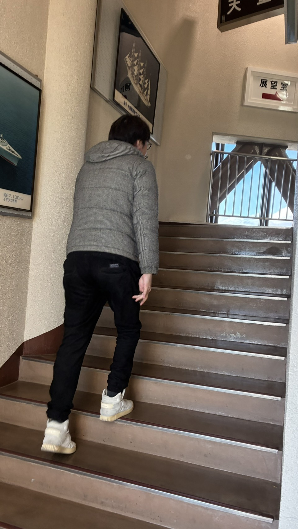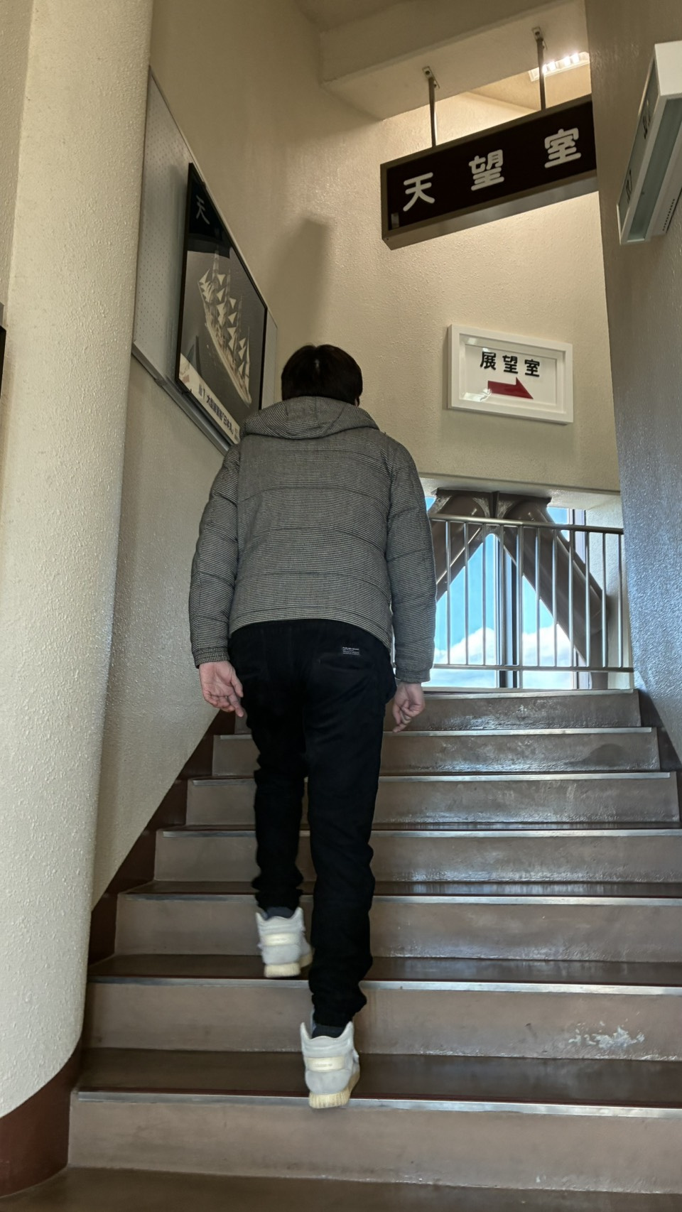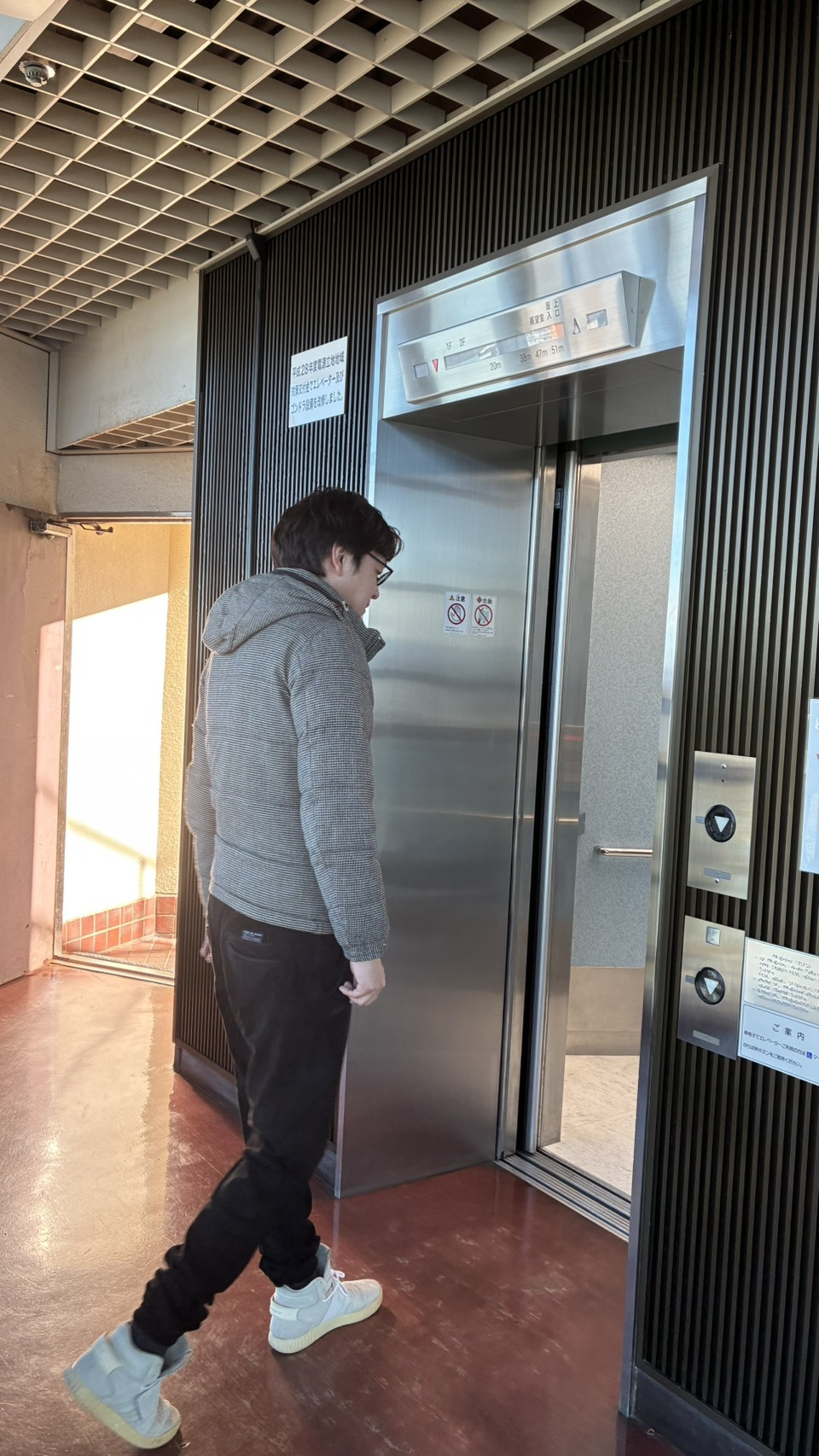 エレベーターは使わずに階段で上りました!